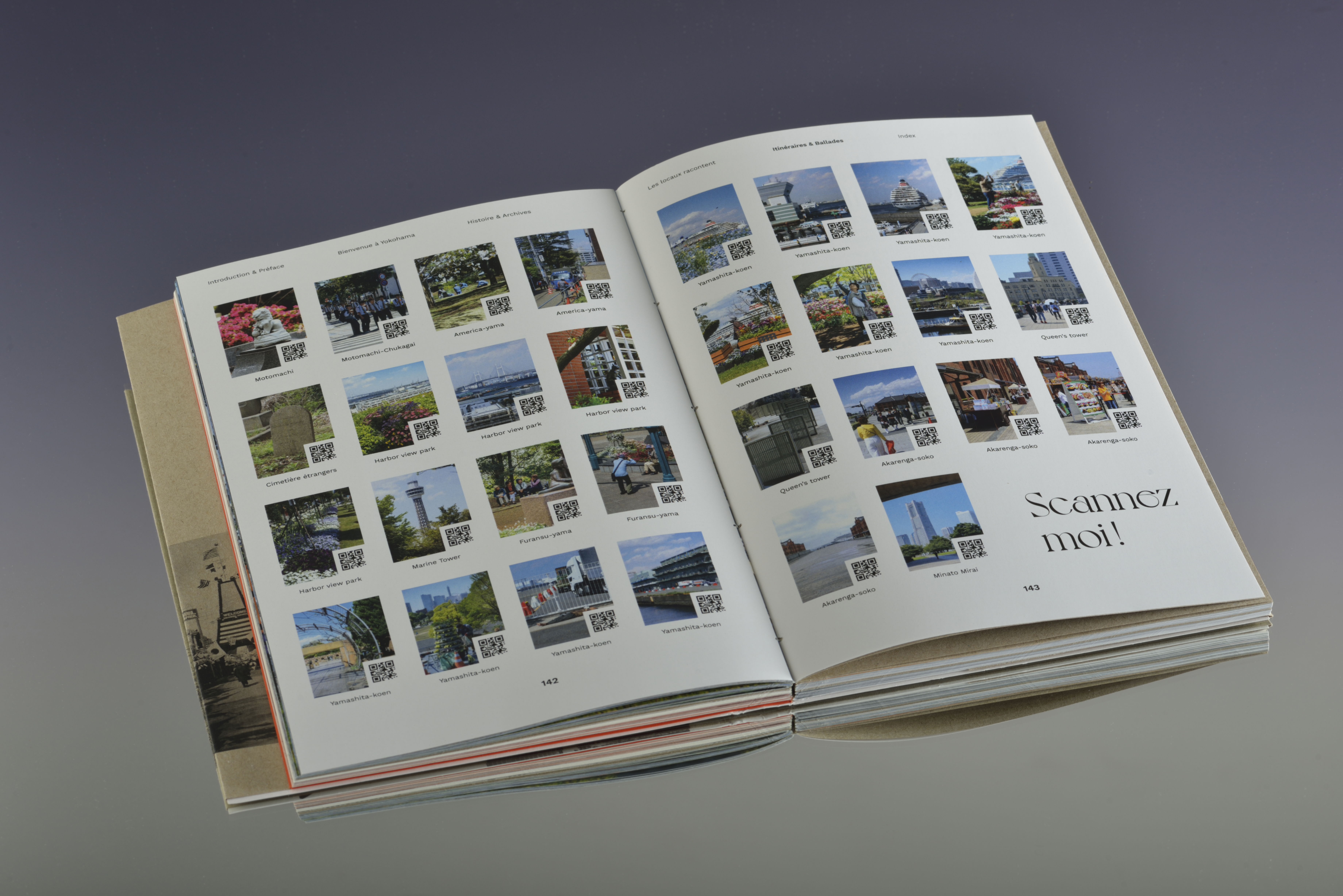 Pensé à la fois comme un livre à consulter chez soi et un guide, Yokohama e Yokoso! vous emmène dans la ville de Yokohama. Au gré des pages vous découvrirez son histoire, partirez à la rencontre de ses habitants et vous vous promènerez dans ses ruelles, sur ses avenues, dans ses parcs à travers une série de photographies hautes en couleurs que j’y ai réalisées. La mise en place de QR codes jumelés à une application mobile permet de scanner des destinations en amont afin de créer ses itinéraires sur mesure et d’accéder aux informations pratiques et à la géolocalisation.